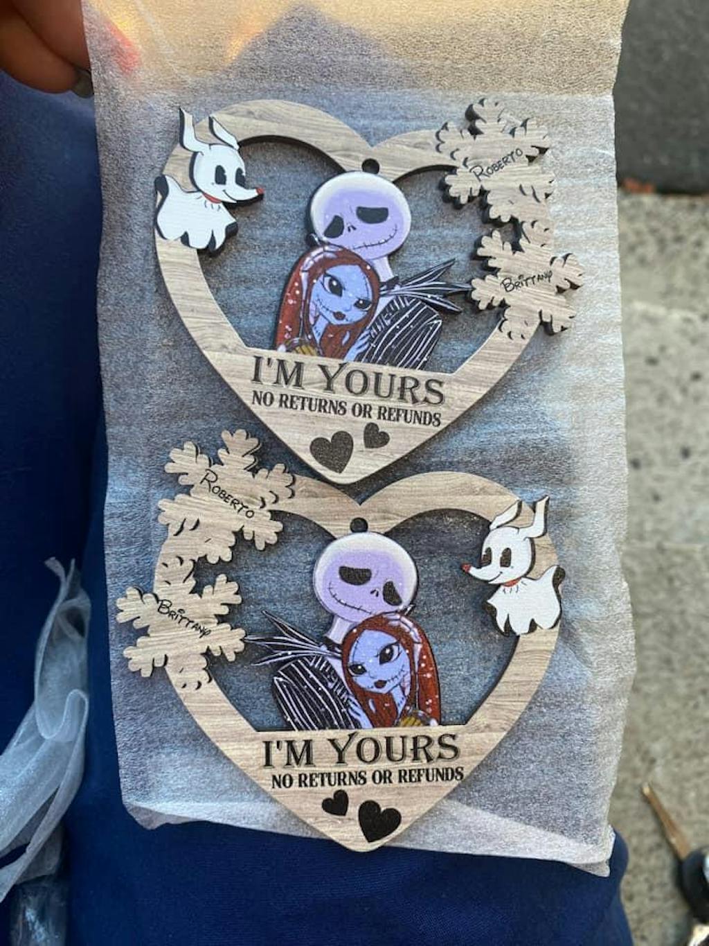 Got mine today sooooo happy with them. And they are double sided which I didn’t know so if they turn on the tree there isn’t a blank side… love love love them. Will say jacks shadow on his face looks purplish in person but they’re still fantastic and look just as good as the photos