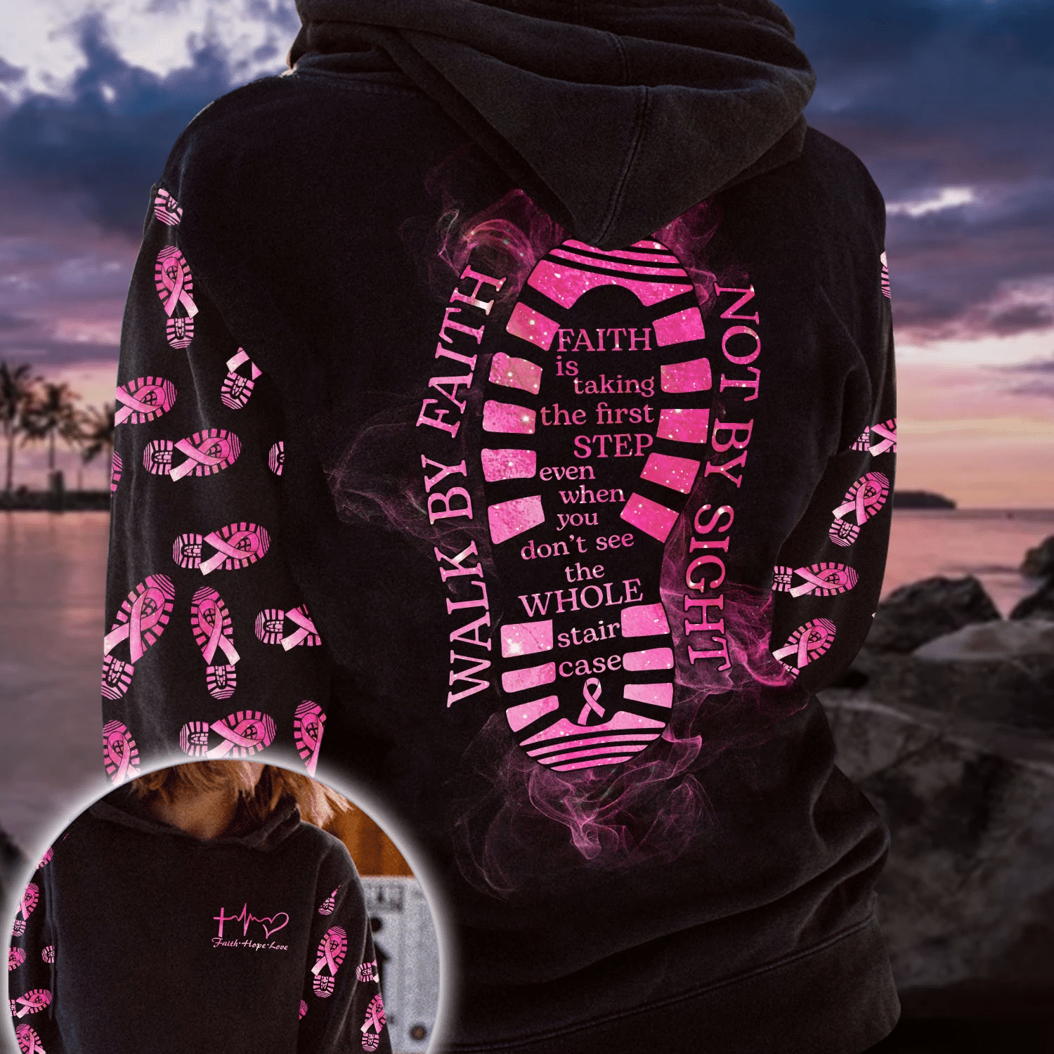 Walk By Faith Not By Sight - Breast Cancer Awareness All Over T-shirt and Hoodie 0822